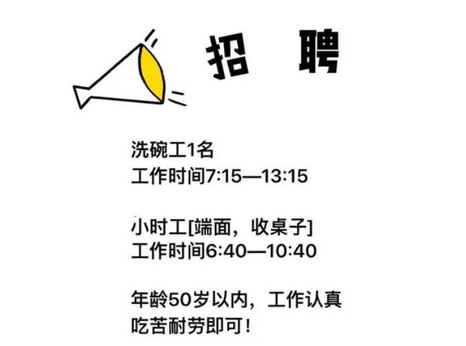 由于本店客流量增大,先招聘早餐女工一名。