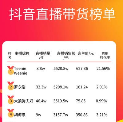 2020年3月26日,罗永浩正式宣布抖音成为其独家直播带货平台,并于4月1日晚完成了直播带货首秀。数据显示,首次直播支付交易总额超1.1亿元,累计观看人数超4800万人。
